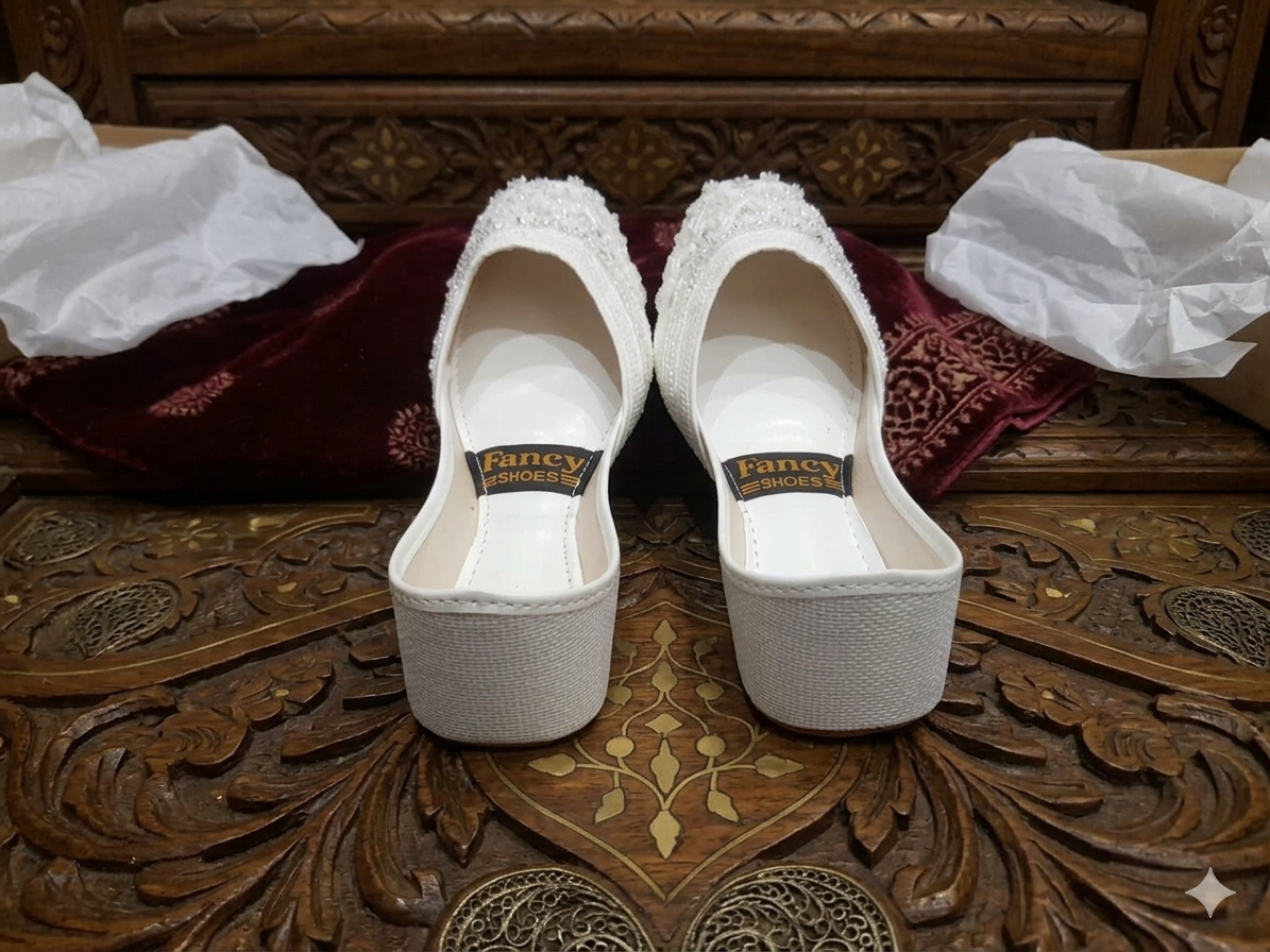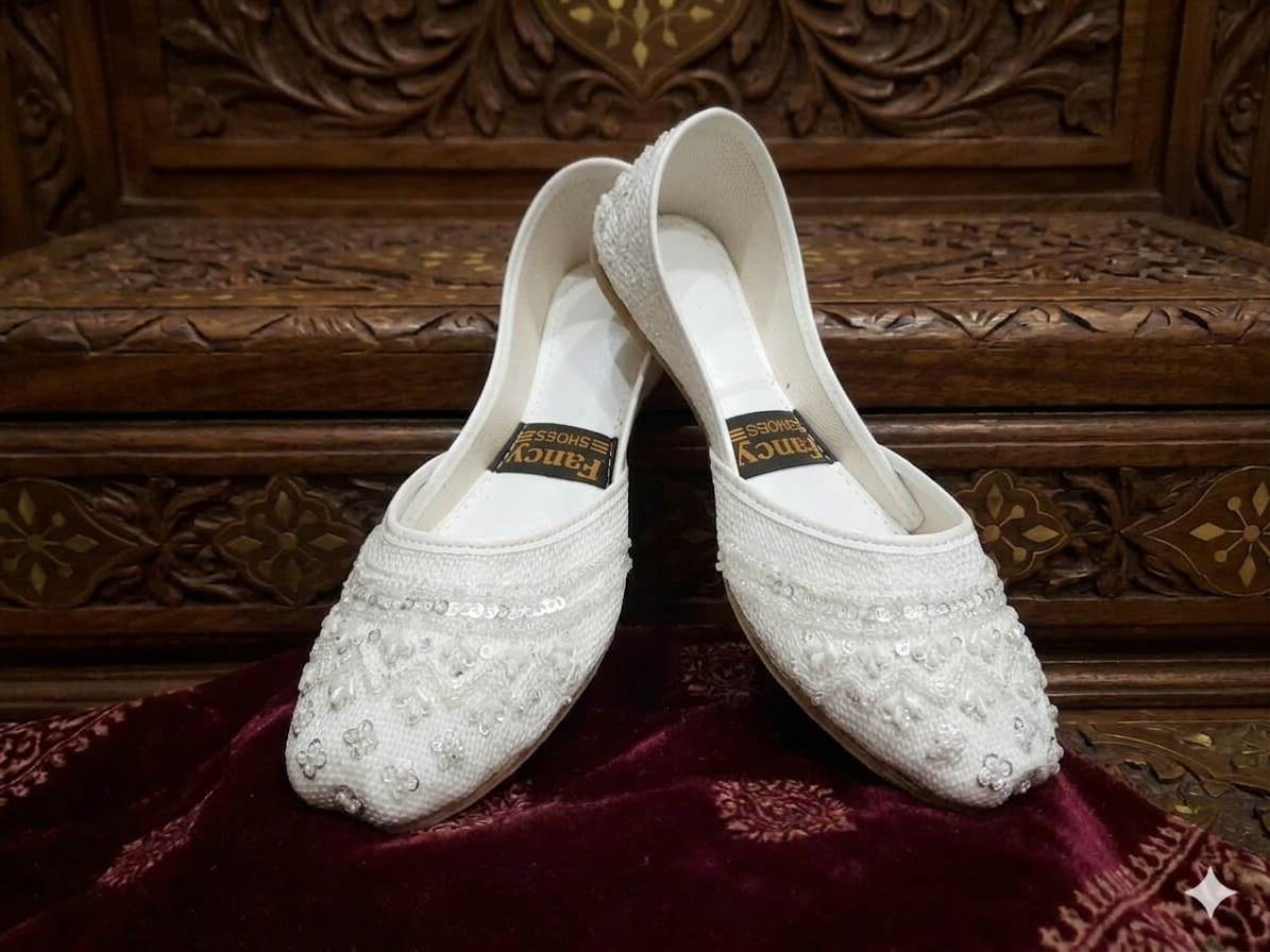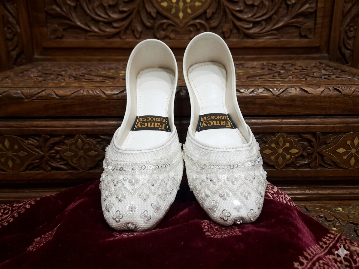 Beautiful Design: Decorated with white pearls, beads, and sequins.