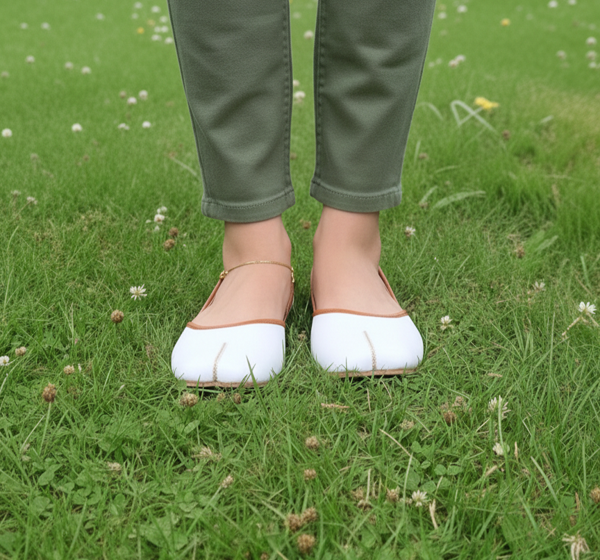 White Leather Khussa – Soft Padded & Non-Slip Sole